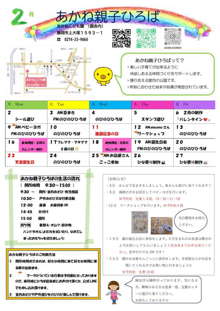 子育て支援センター2月のプログラム