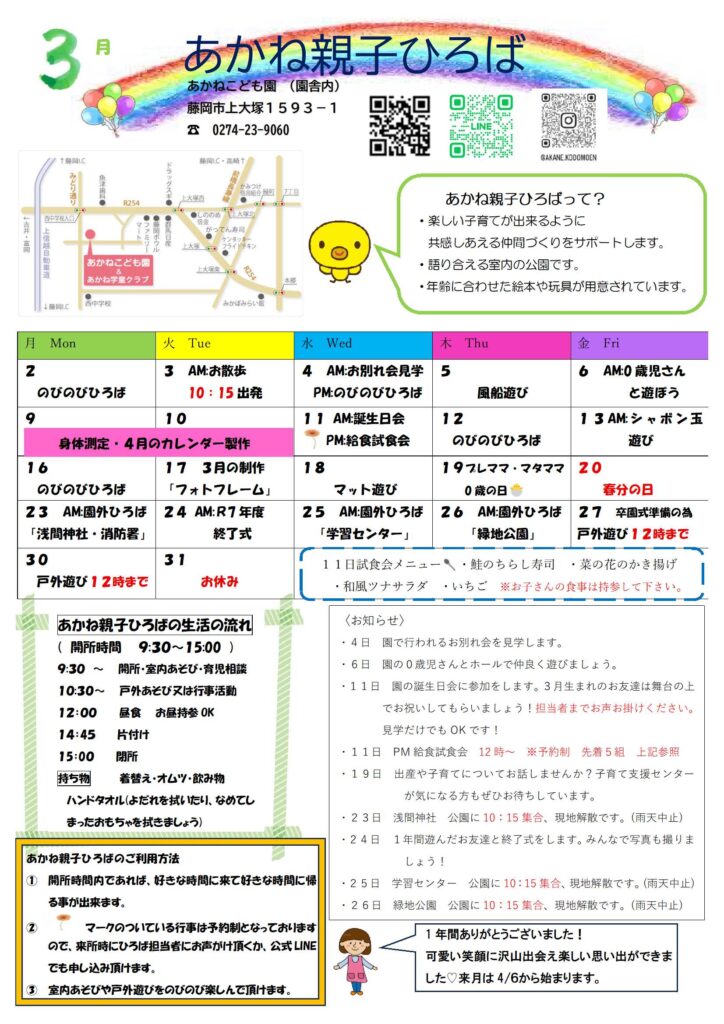 子育て支援センター3月のプログラム